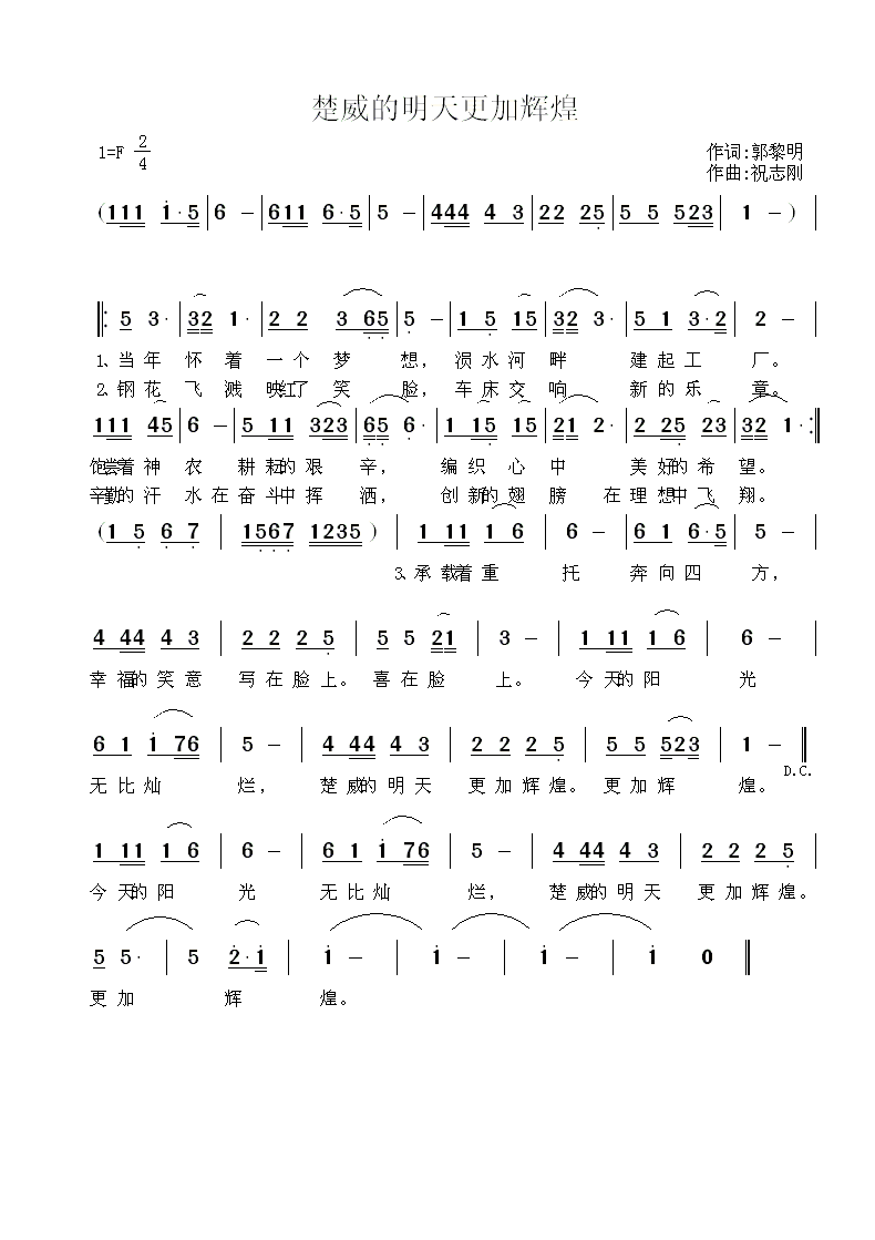 三环铸造之歌--楚威的明天更加辉煌(词、曲)